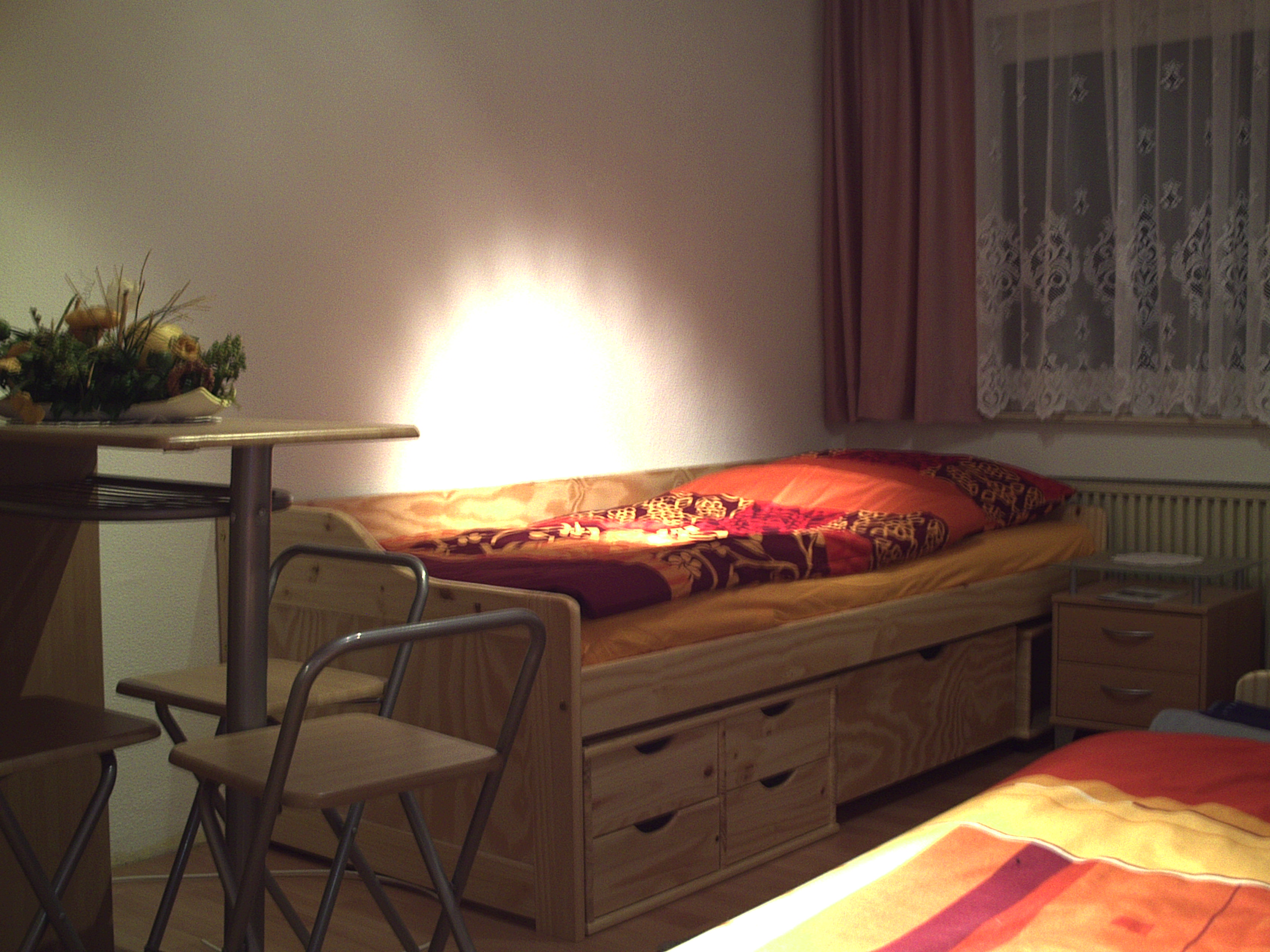 In unseren 7 Nichtraucherzimmern, teilweise mit Dusche, die als 2-3 Bett Zimmer gestaltet sind, finden insgesamt 15 Personen platz, zum Erholen, Schlafen und Entspannen. Die Zimmer sind liebevoll und komplett eingerichtet. Jedes Bett ist für den erholsamen Schlaf mit einer hochwertigen Matratze ausgestattet. Für die Gäste in Zimmern ohne eigene Dusche/WC stehen unsere sauberen und gepflegten Gemeinschaftsduschen und WC´s zur Verfügung. Selbstverständlich können Sie die Sonnenterrasse, den Aufenthaltsraum [ehem. Kneipe] und die überdachte Terrasse nach Ihrem Belieben nutzen. Neben der geräumigen, voll ausgestatteten Küche steht Ihnen ein großer Kühlschrank und ein großer Gefrierschrank zur Verfügung. Für Raucher steht ein beheizter Gemeinschaftsraum zur Verfügung. | |||||||||||||||||||||||||||||||||||